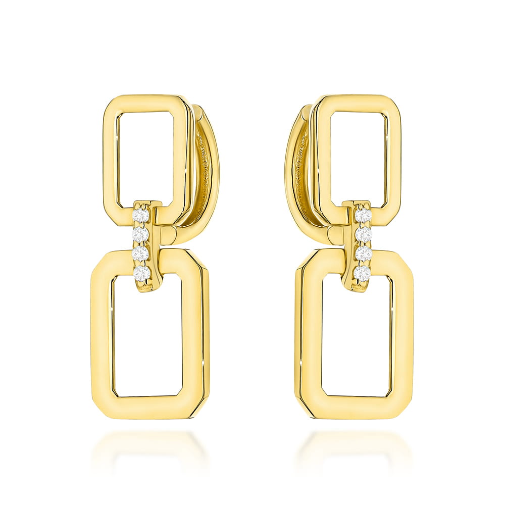 Kolczyki złote prostokąty z cyrkoniami na kreolu