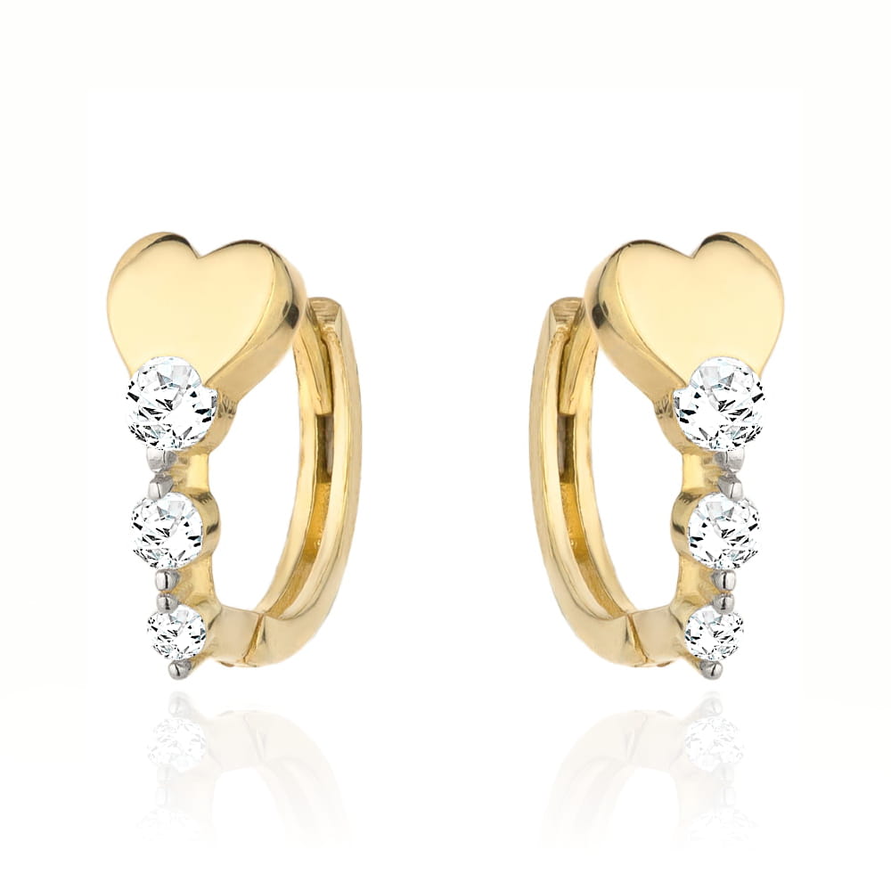 Kolczyki złote serce i rząd trzech cyrkonii