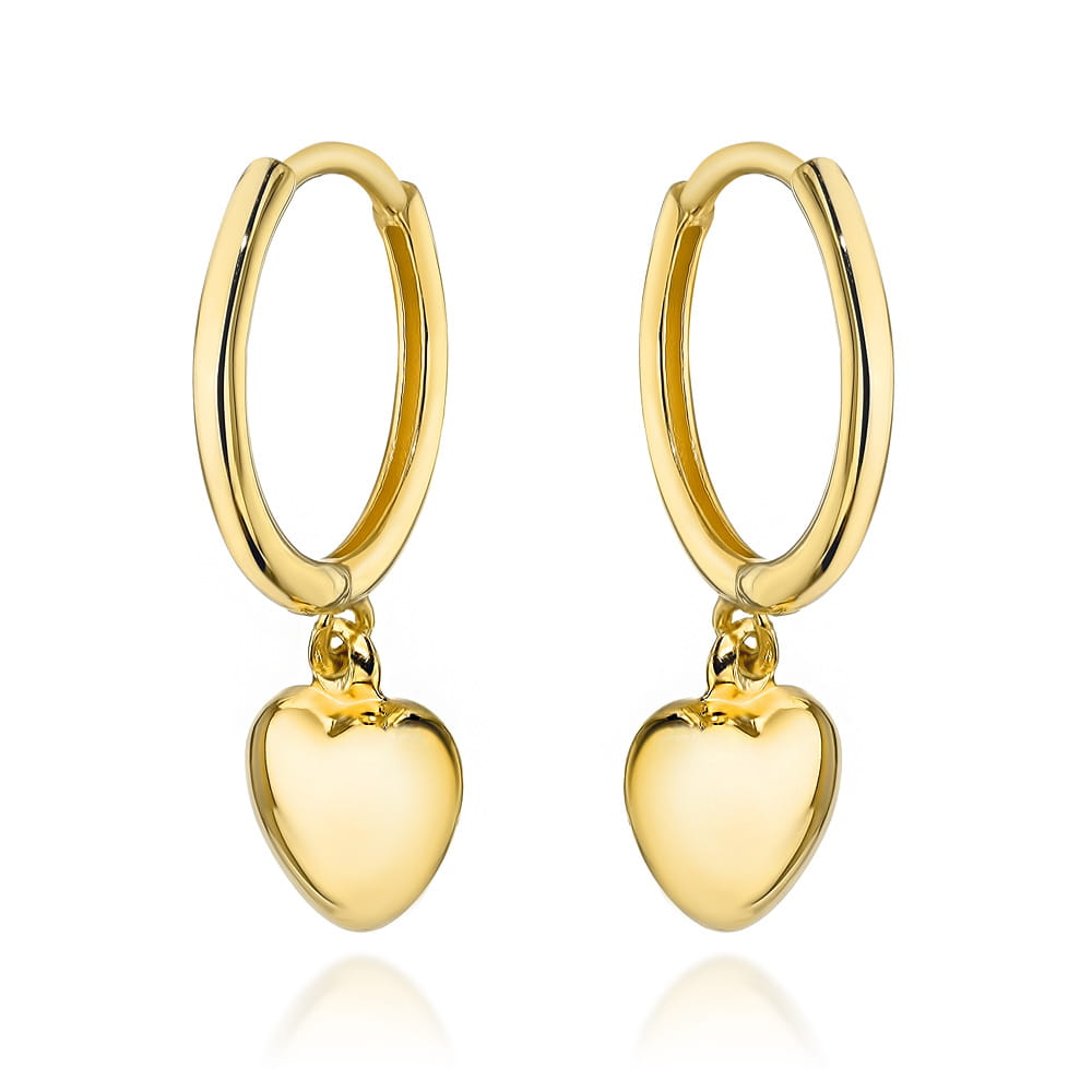 Kolczyki złote serce zawieszone na kółeczku