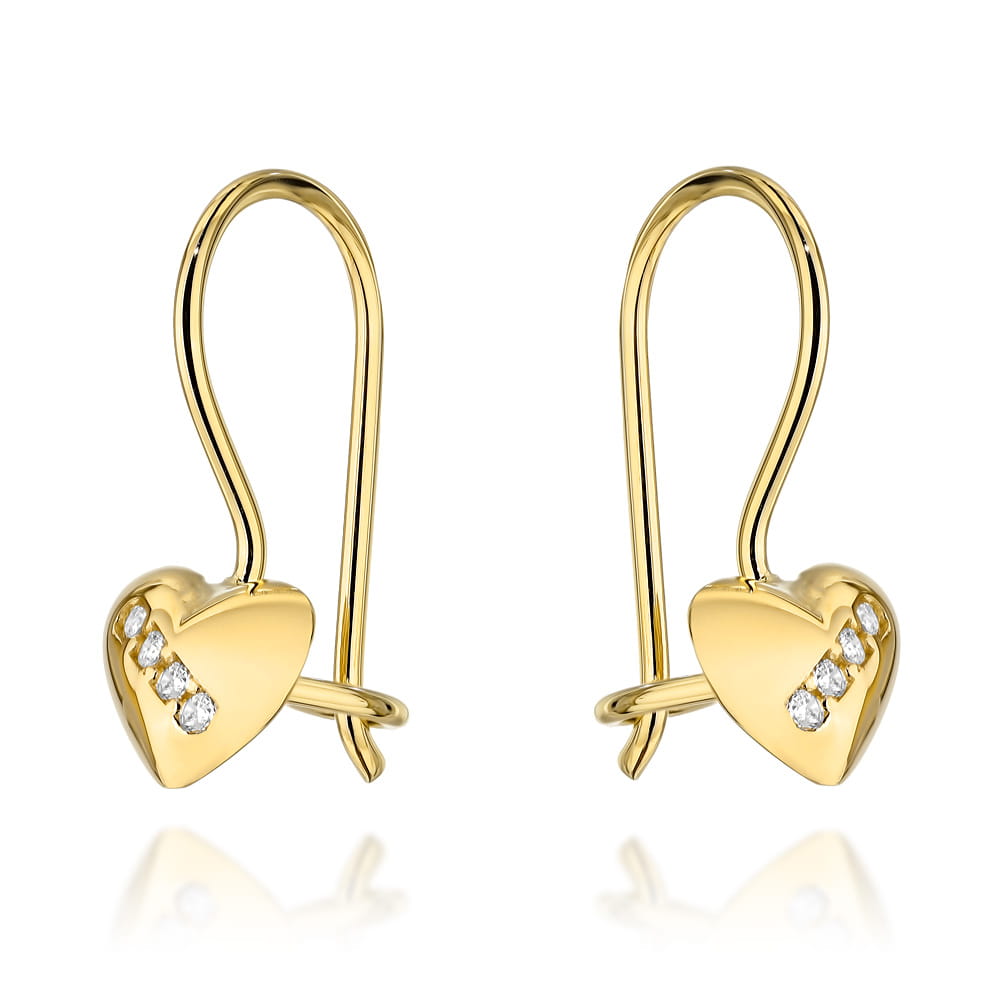 Precyzyjnie wykonane złote kolczyki próby 585. Doskonałe jako prezent na imieniny, urodziny czy ważny jubileusz. Kolczyki z motywem serduszka idealnie sprawdzą się jako upominek dla ukochanej osoby.