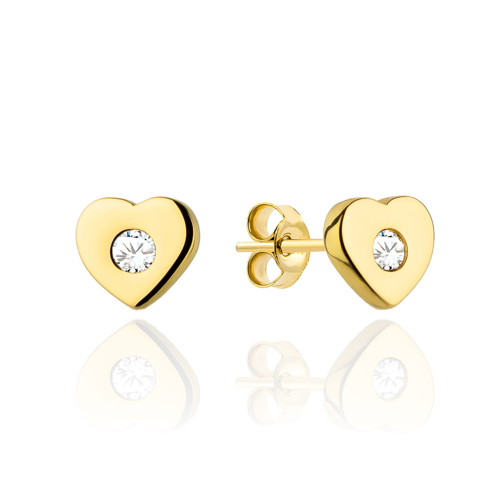 Kolczyki złote serduszko z cyrkonią na środku