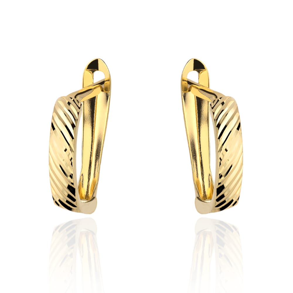 Kolczyki złote smukłe zdobione diamentowaniem na angielskim zapięciu
