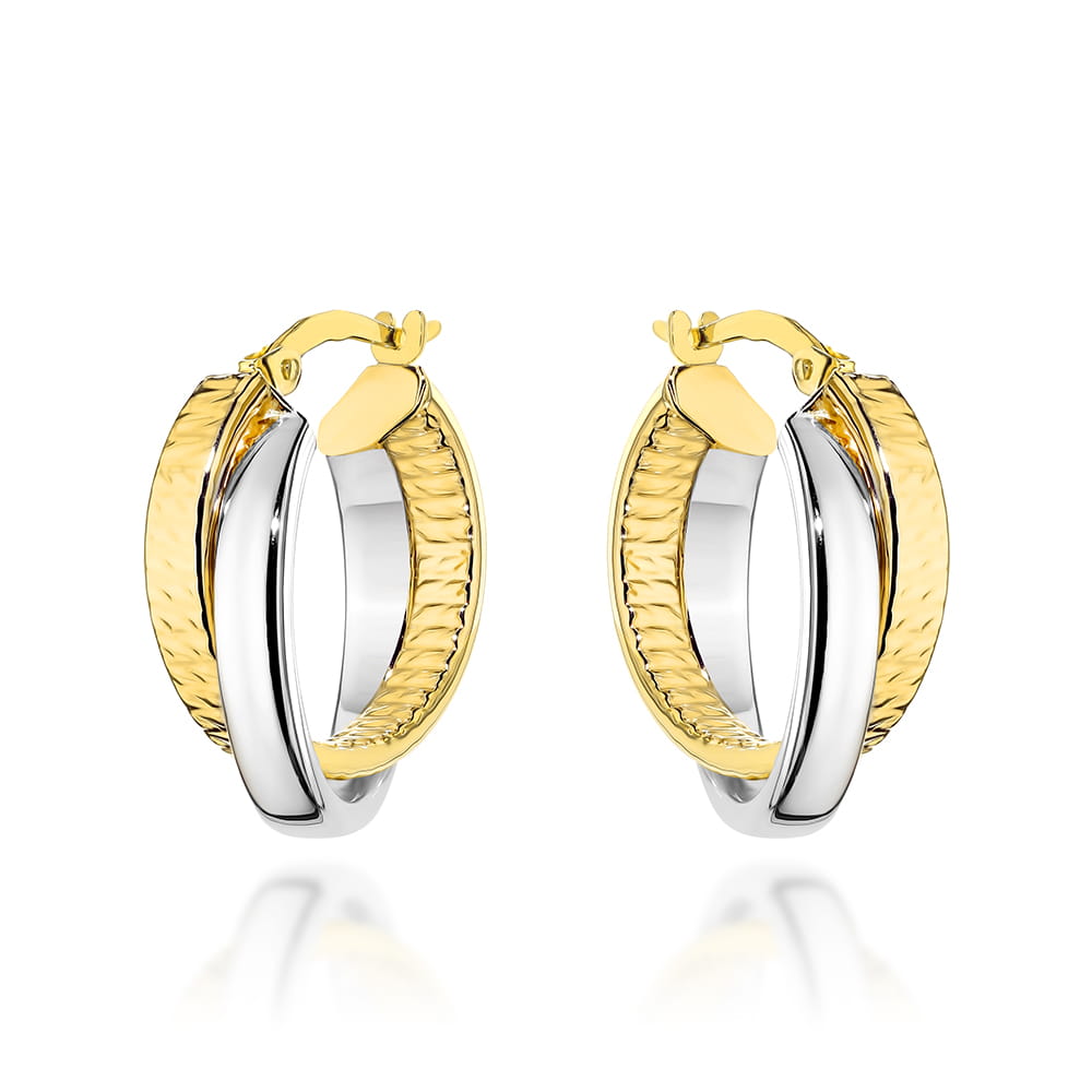 Kolczyki złote splecione kółeczka z diamentowaniem w dwóch kolorach złota