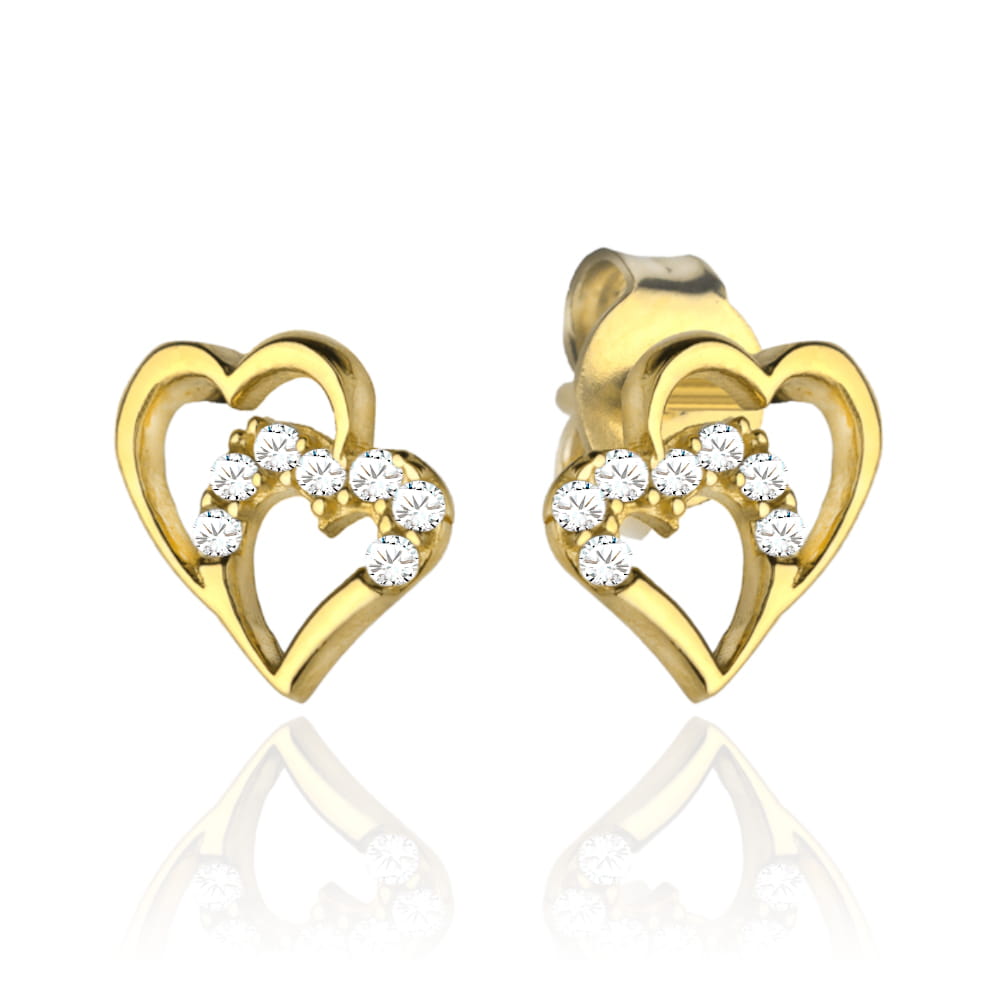 Kolczyki złote splecione serca i cyrkonie