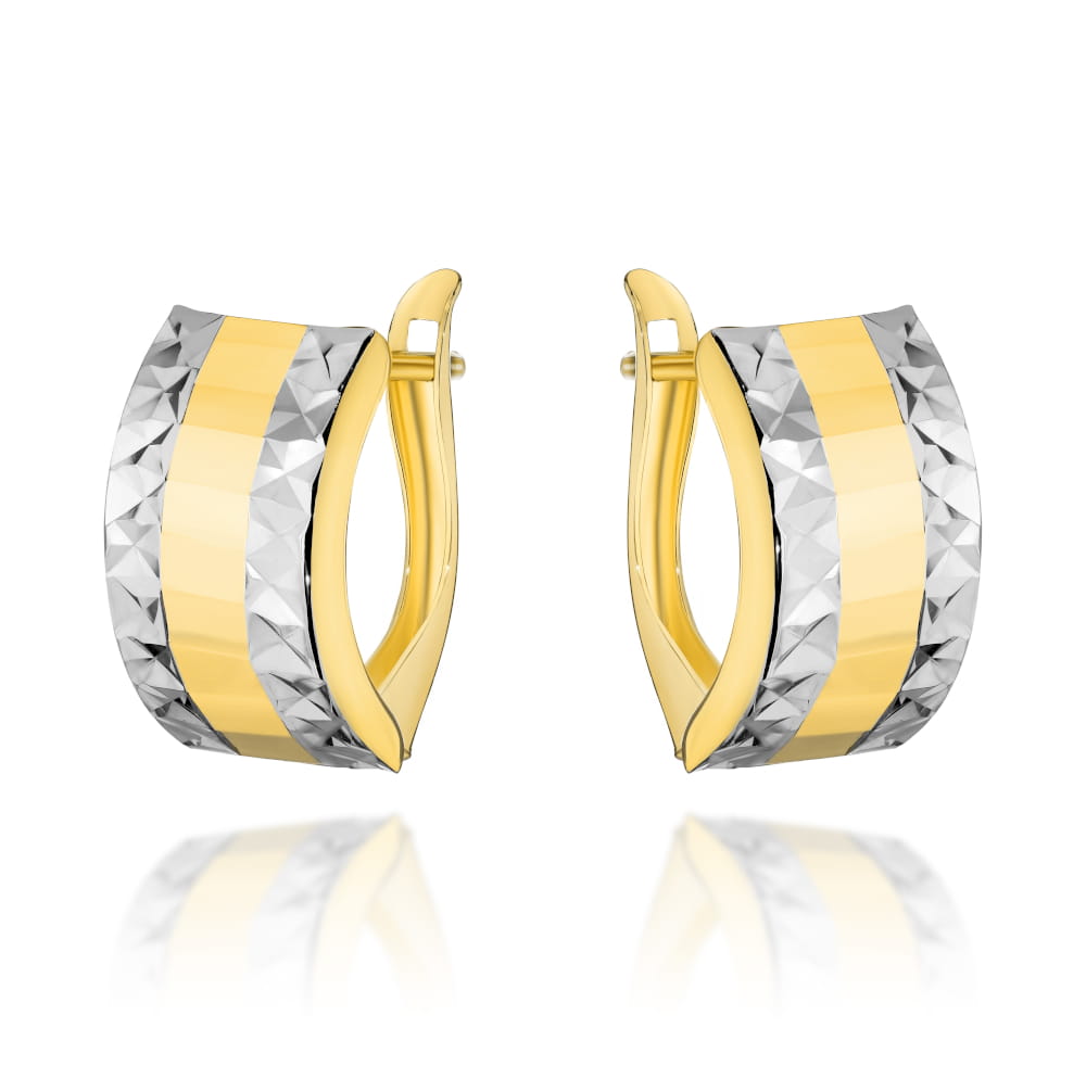 Kolczyki złote szerokie z diamentowaniem w dwóch kolorach złota