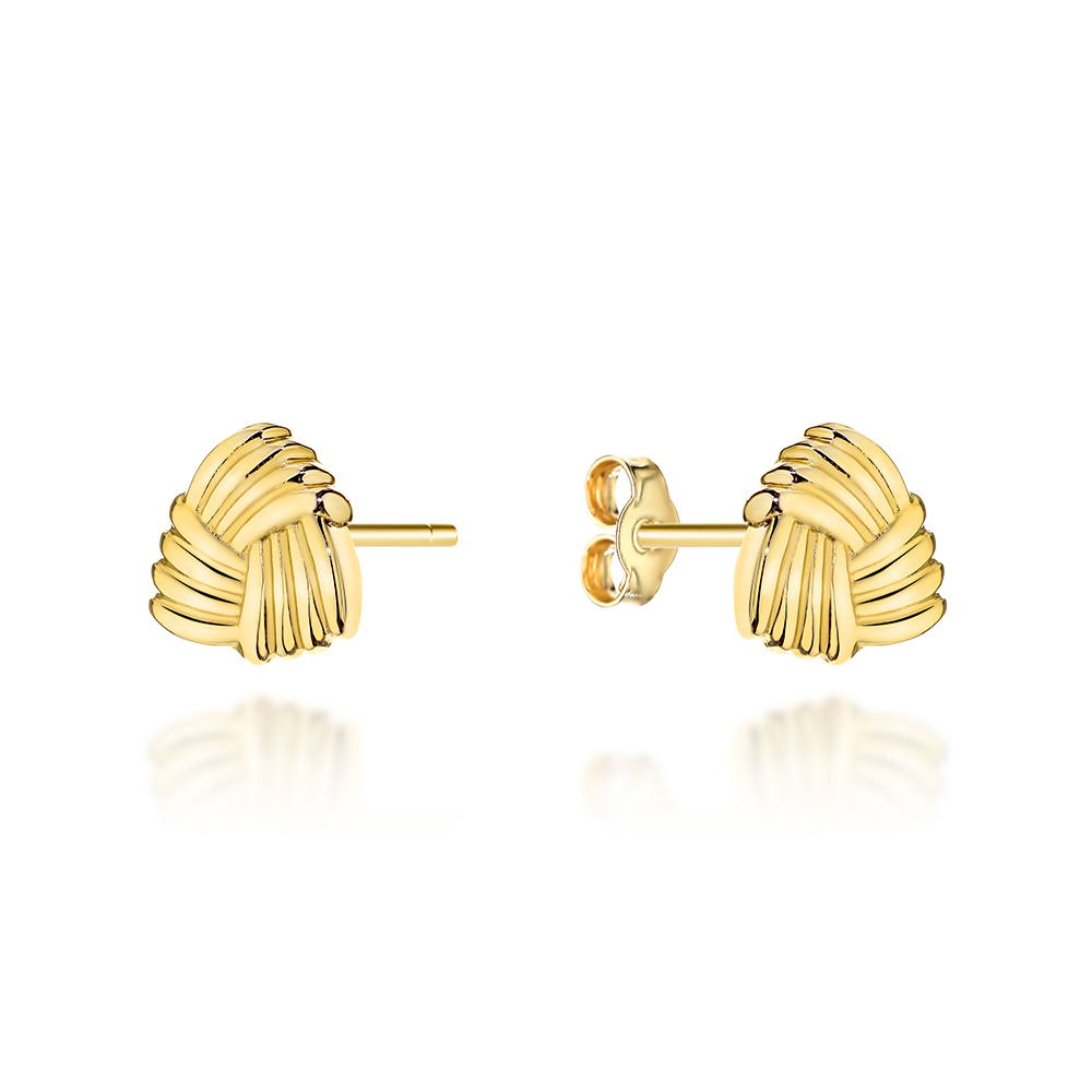 Kolczyki złote trójkątne zaplatane na sztyfcie