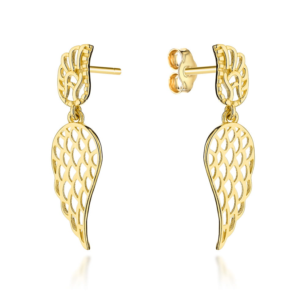 Precyzyjnie wykonane złote kolczyki próby 585. Doskonałe jako prezent na imieniny, ważny jubileusz ozdoba eleganckiej kreacji.