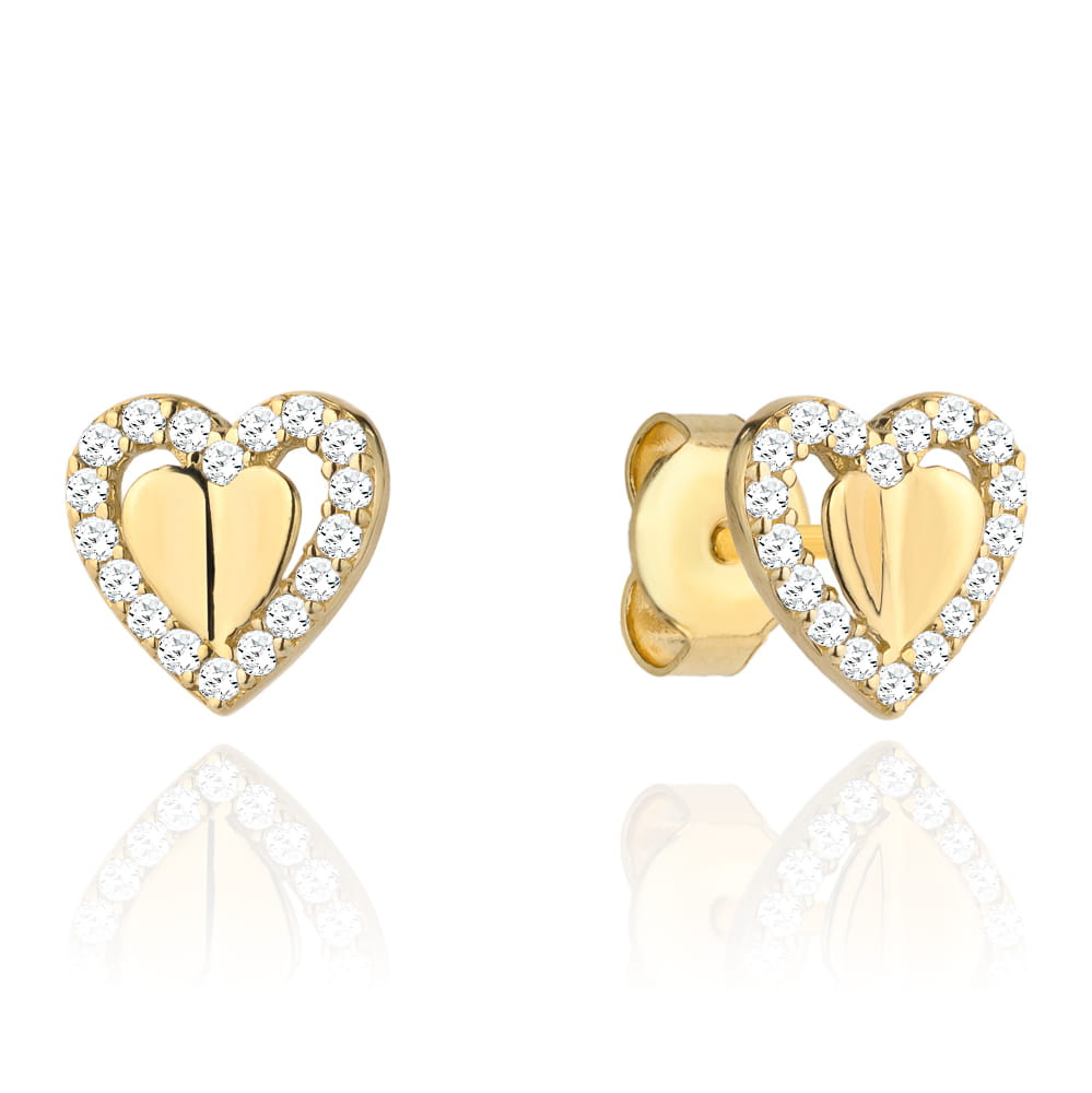 Kolczyki złote wypukłe serce otoczone sercem z cyrkonii