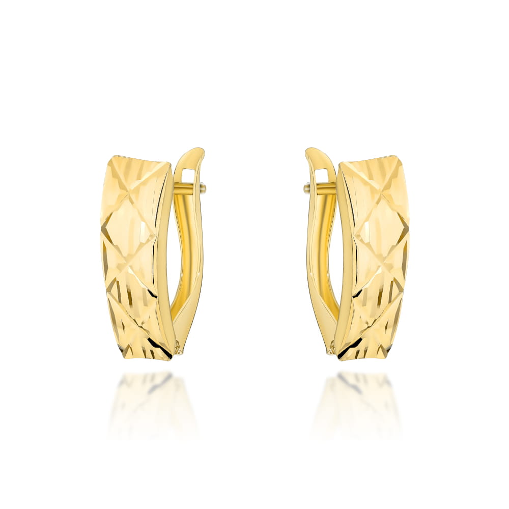 Kolczyki złote z diamentowaniem w kształcie rombów