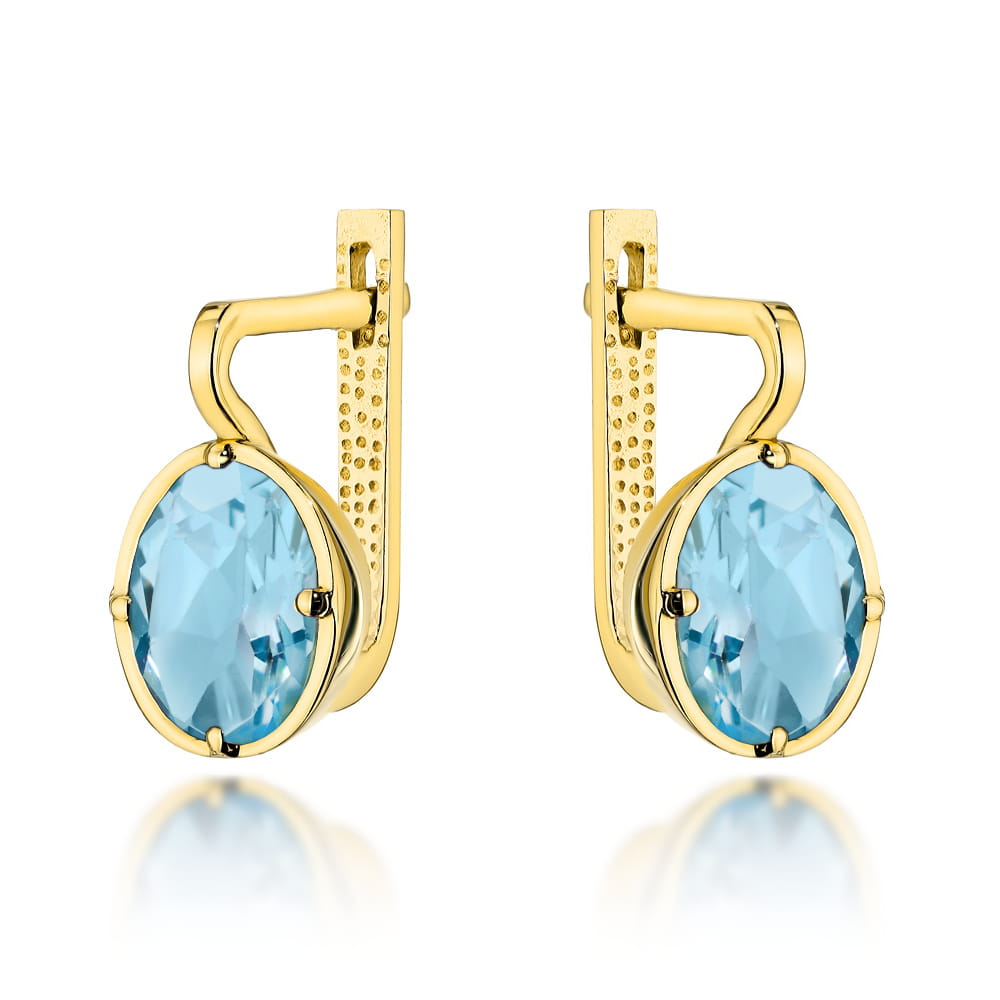 Kolczyki złote z kolekcji „COLORFUL STONE” z eleganckim zapięciem – topaz owal