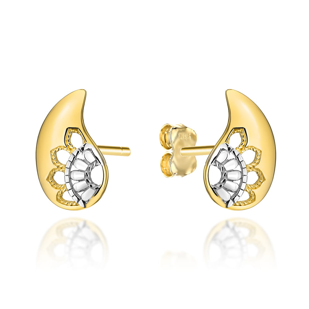 Kolczyki złote zdobione skrzydła w dwóch kolorach złota
