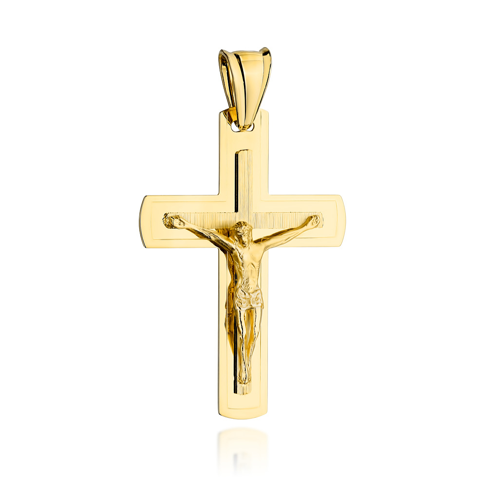 Krzyż złoty zdobiony satynowaniem z Jezusem
