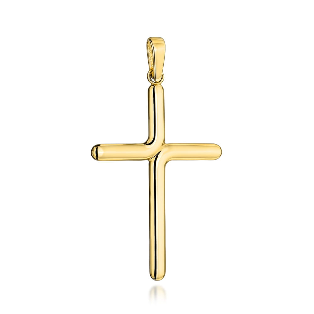 Precyzyjnie wykonany złoty krzyżyk próby 585. Pamiątka chrztu, pierwszej komunii, bierzmowania lub ważnego jubileuszu.