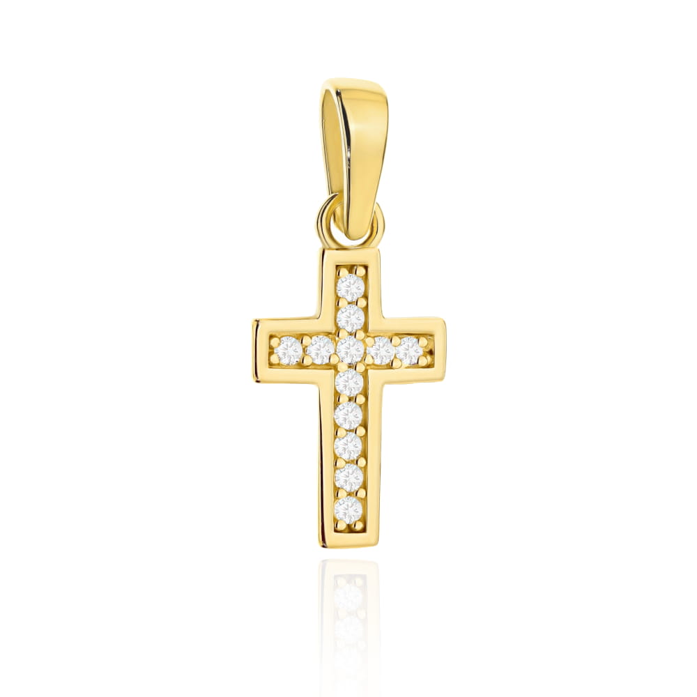 Krzyżyk złoty mały wysadzany cyrkoniami