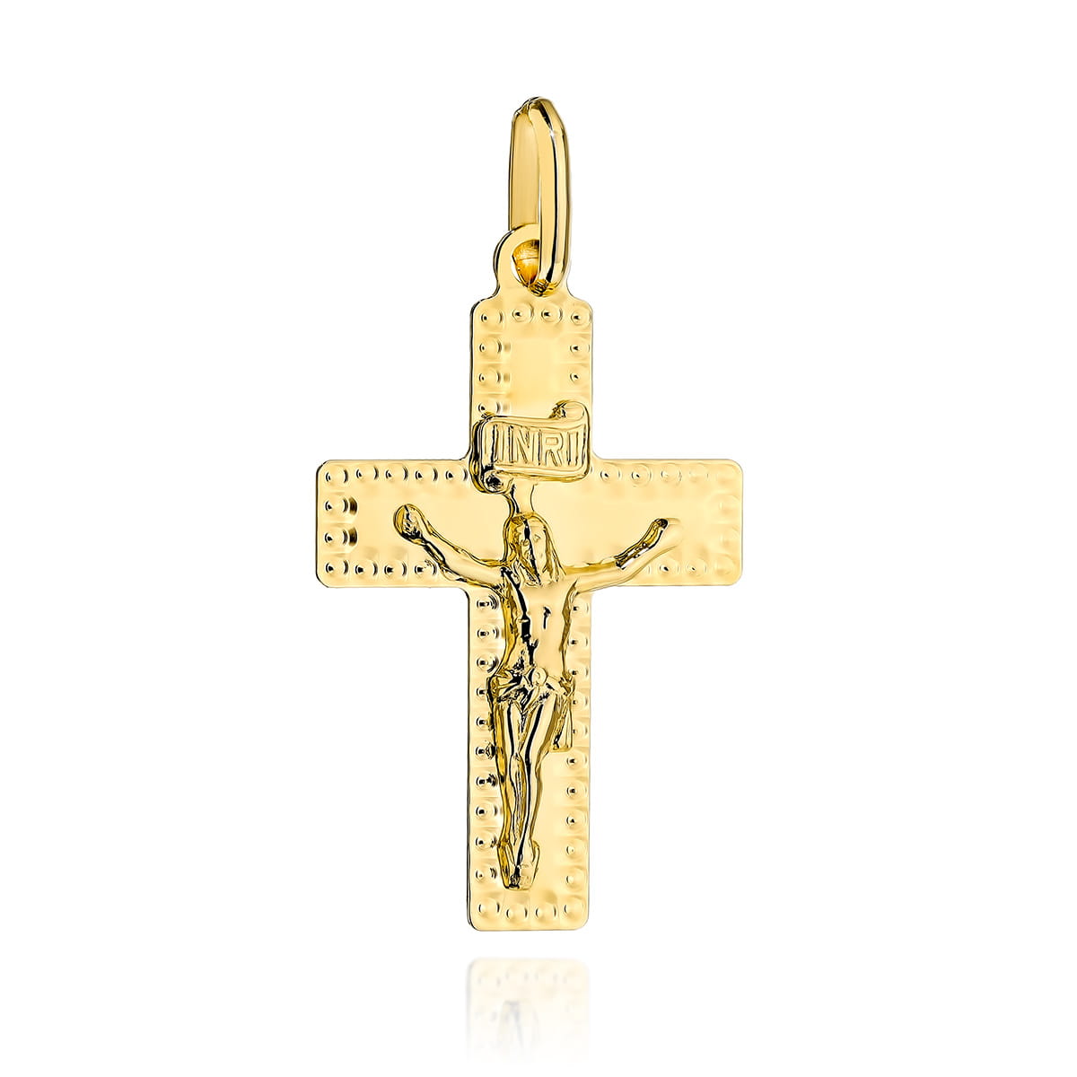 Precyzyjnie wykonany złoty krzyżyk próby 585. Pamiątka chrztu, pierwszej komunii, bierzmowania lub ważnego jubileuszu.