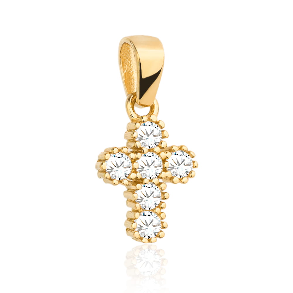 Krzyżyk złoty z cyrkoniami i kuleczkami