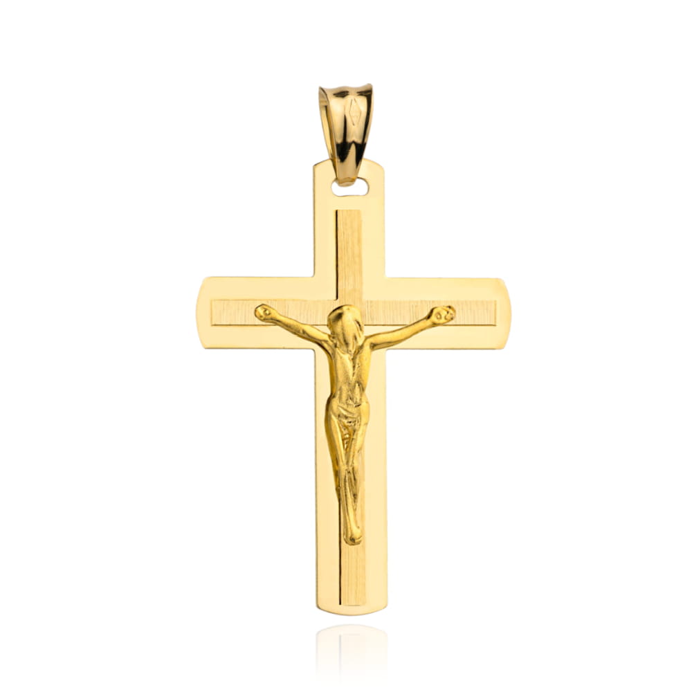Precyzyjnie wykonany złoty krzyżyk próby 585. Pamiątka chrztu, pierwszej komunii, bierzmowania lub ważnego jubileuszu.