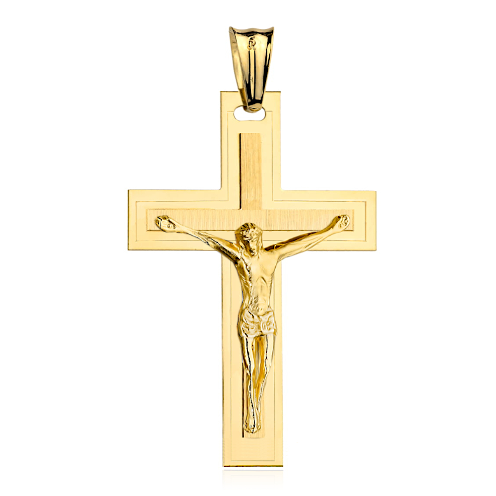 Krzyżyk złoty z Jezusem zdobiony satynowaniem