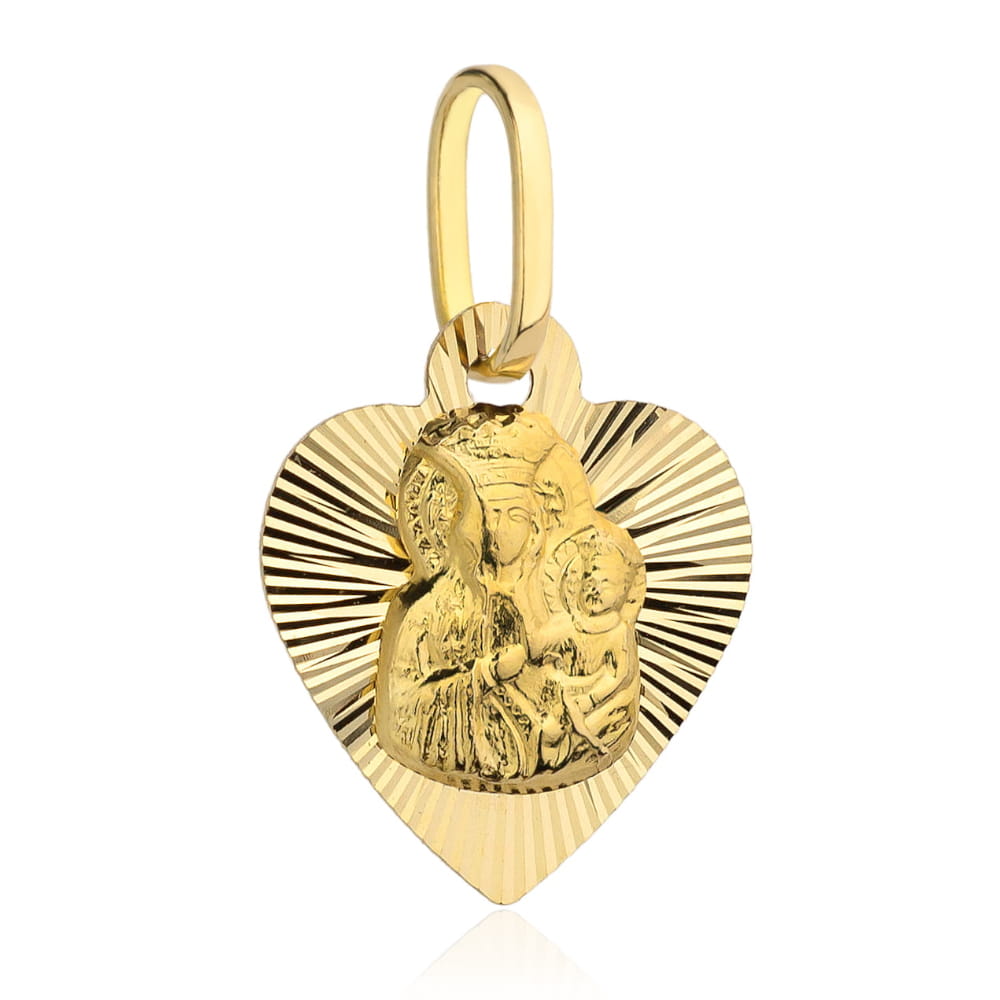 Medalik Matka Boska Częstochowska w diamentowanym serduszku większy