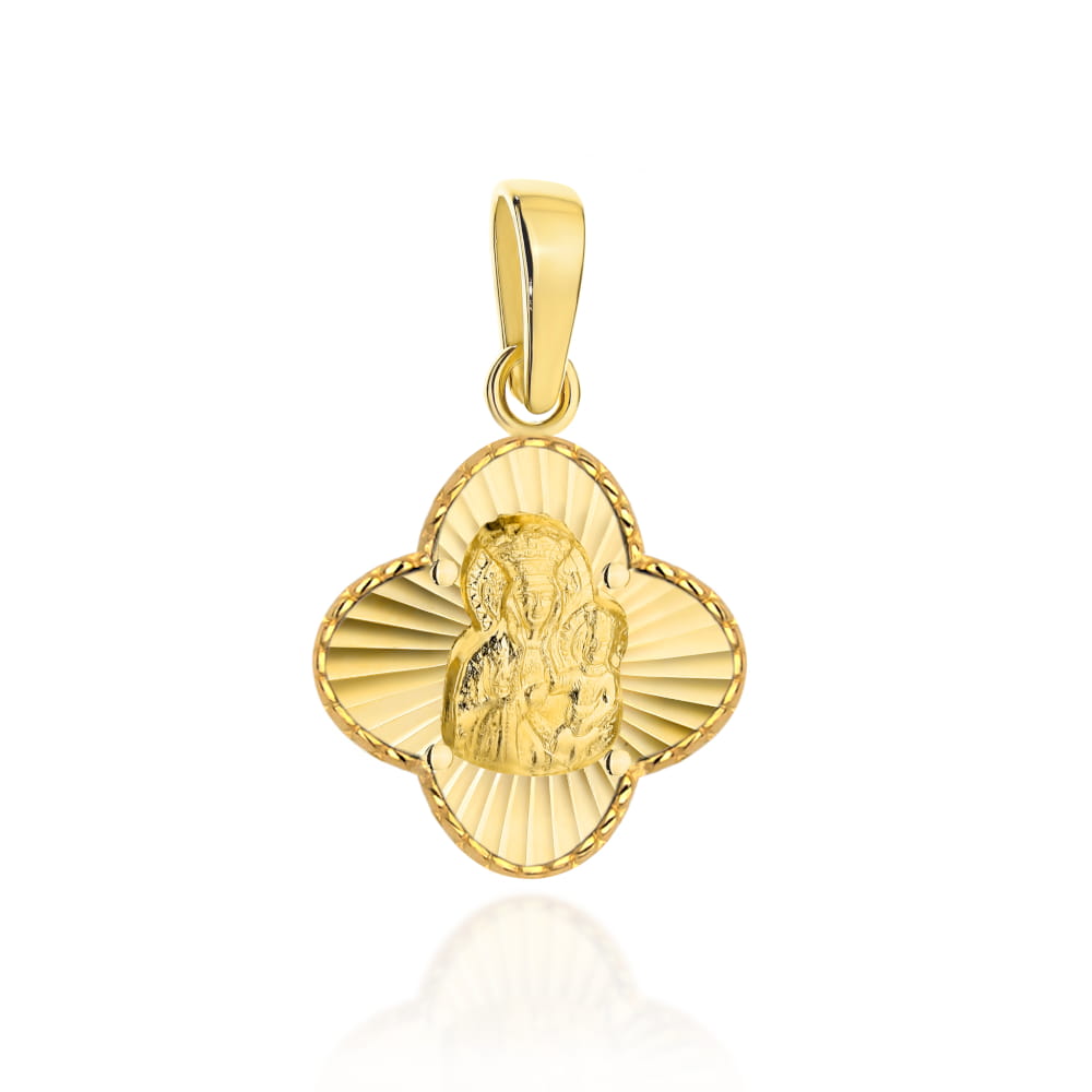 Medalik złoty Matka Boska Częstochowska w diamentowanej koniczynie
