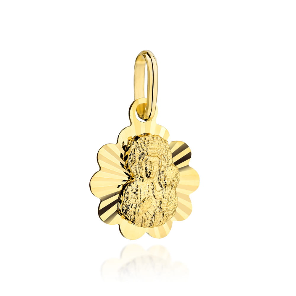 Medalik złoty Matka Boska Częstochowska w diamentowanym kwiatuszku