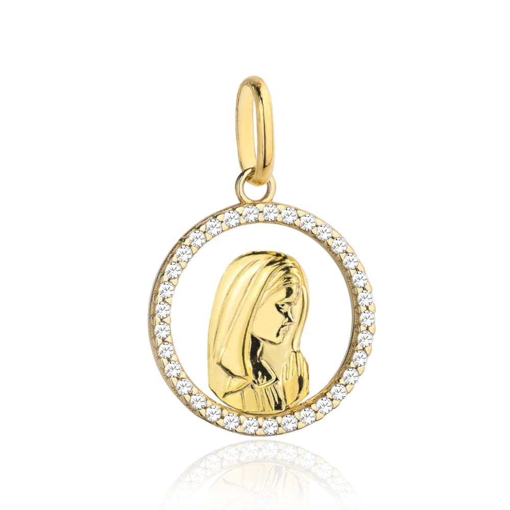 Medalik złoty Matka Boska modląca się w kółku wysadzanym cyrkoniami