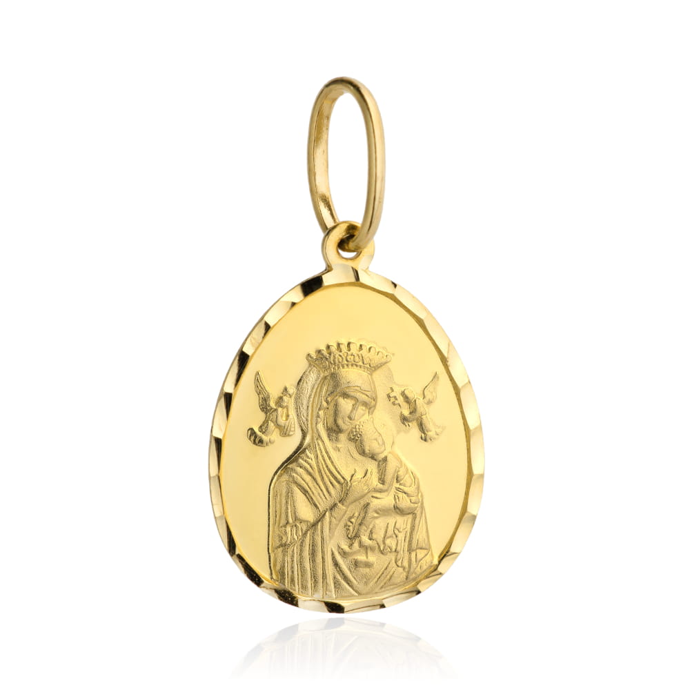 Precyzyjnie wykonany złoty medalik próby 585. Pamiątka chrztu, pierwszej komunii, bierzmowania, ważnego jubileuszu czy rocznicy.