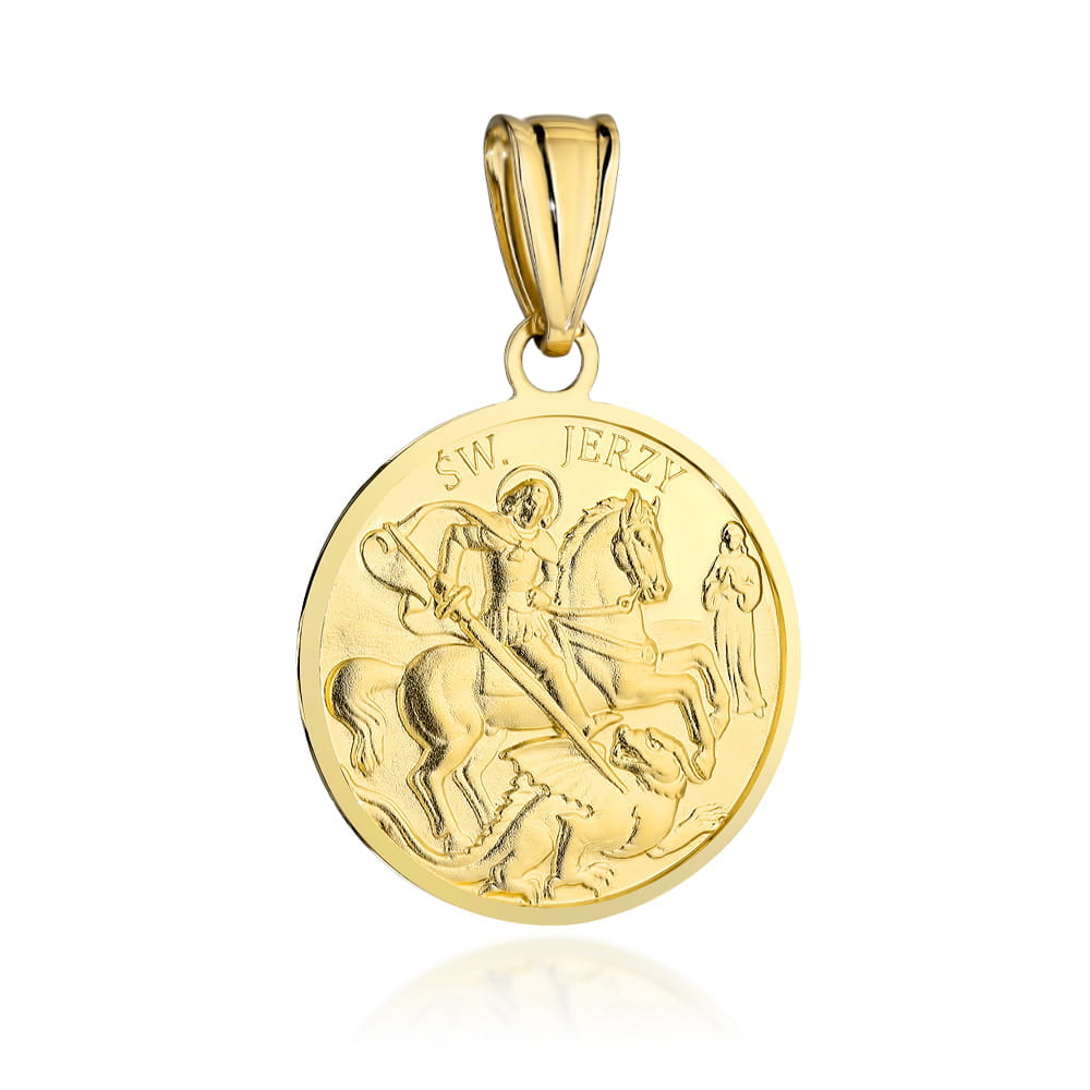 Precyzyjnie wykonany złoty medalik próby 585 z wizerunkiem świętego Jerzego.Pamiątka chrztu, pierwszej komunii, bierzmowania, ważnego jubileuszu czy rocznicy.