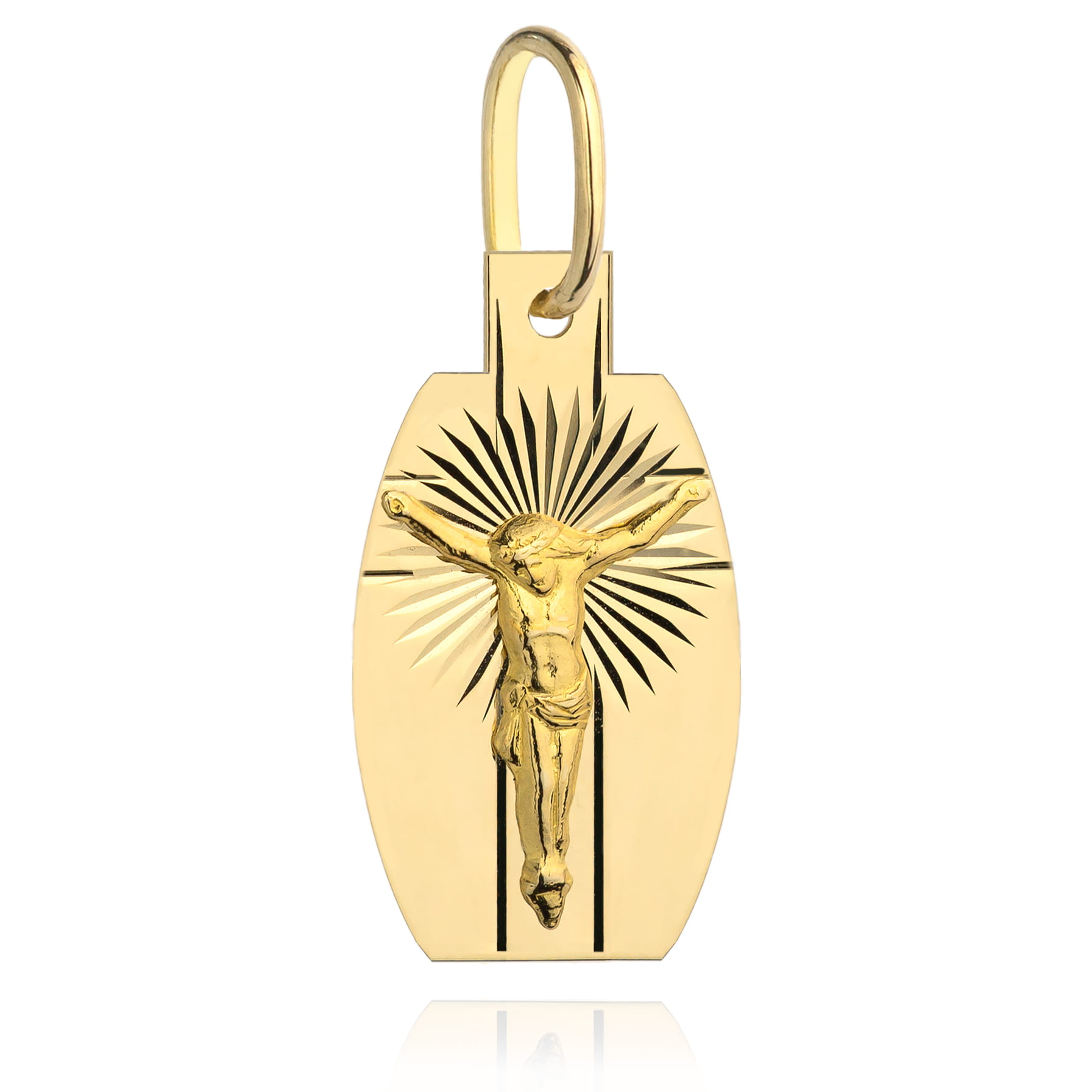 Medalik złoty z ukrzyżowanym Jezusem na blaszce