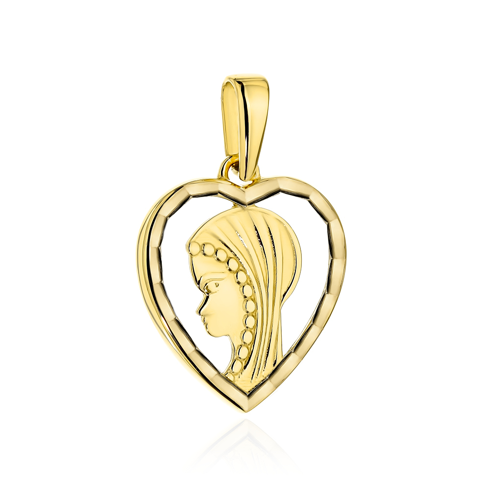 Medalik złoty z wizerunkiem Matki Boskiej w diamentowym sercu