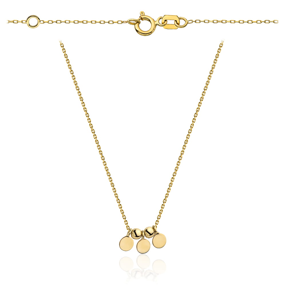 Precyzyjnie wykonany złoty naszyjnik próby 585. Celebrytka z modnymi okrągłymi elementami.