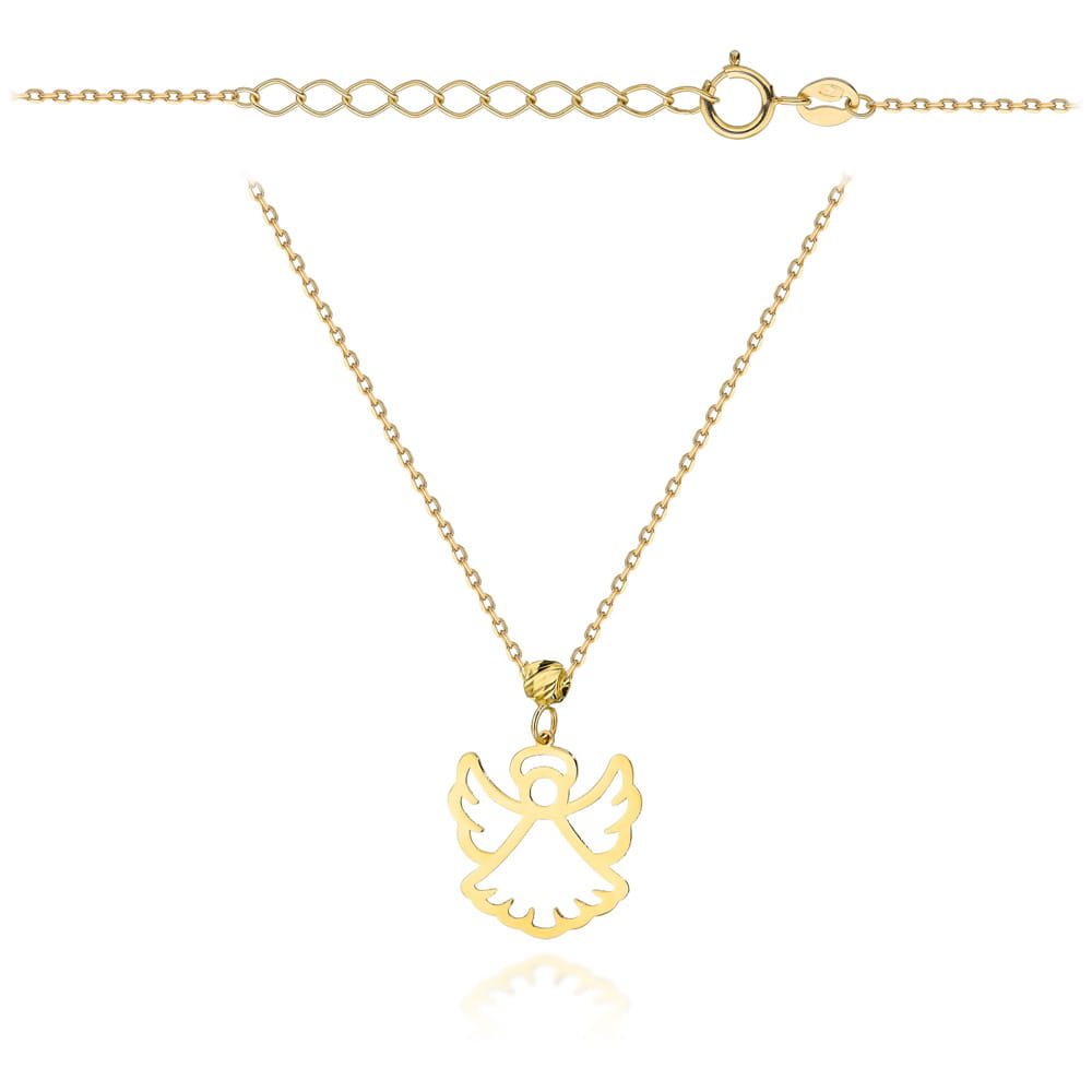 Precyzyjnie wykonany złoty naszyjnik próby 585. Łańcuszek złoty z aniołkiem.