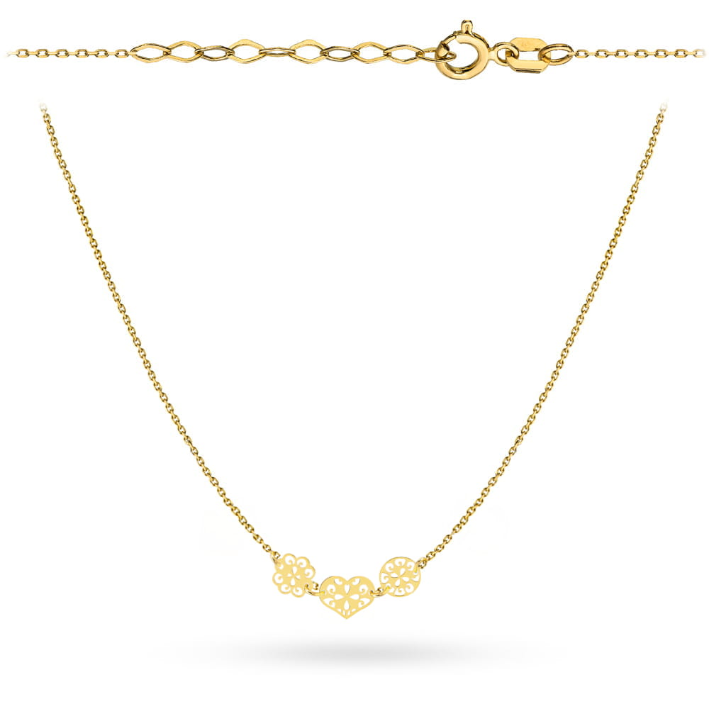 Naszyjnik złoty ażurowe serce, kwiatek i kółko