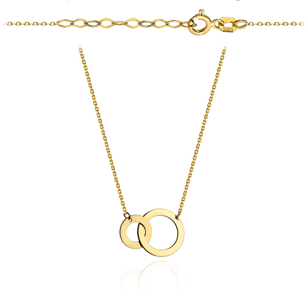 Precyzyjnie wykonany złoty naszyjnik próby 585. Łańcuszek ze złotymi ringami.
