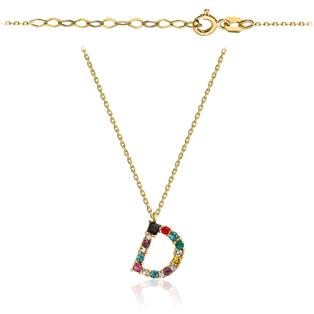 Naszyjnik złoty litera D z kolorowymi kamieniami