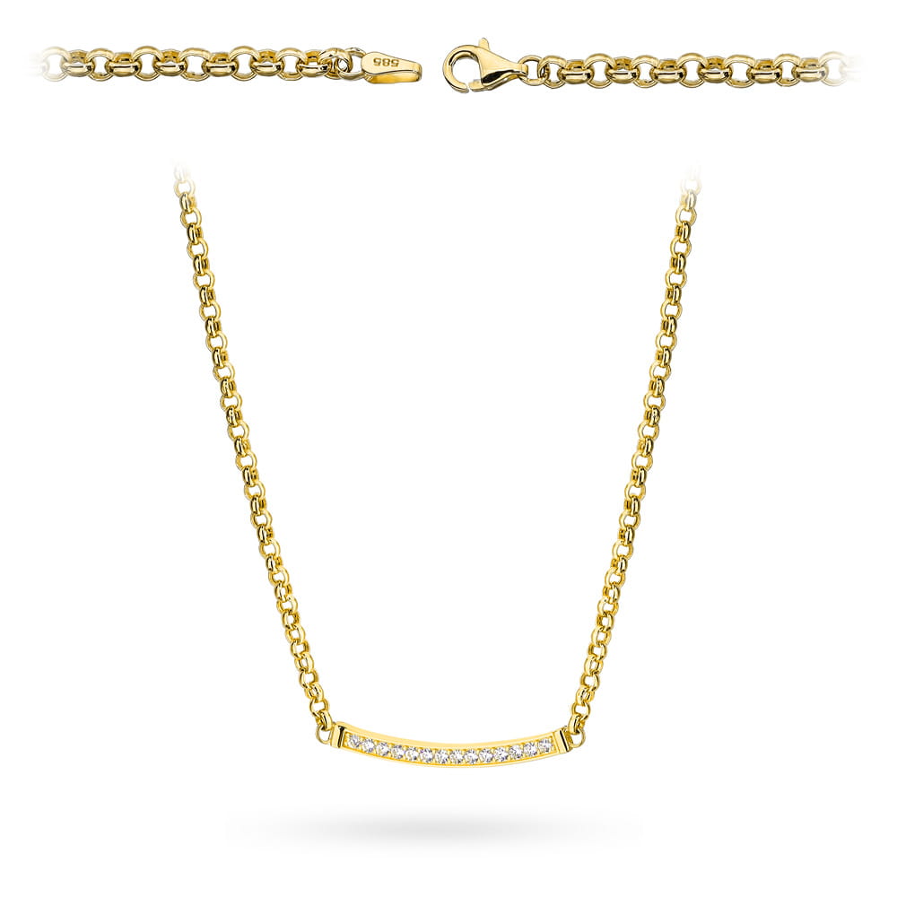 Naszyjnik złoty o splocie rolo z blaszką wysadzaną cyrkoniami