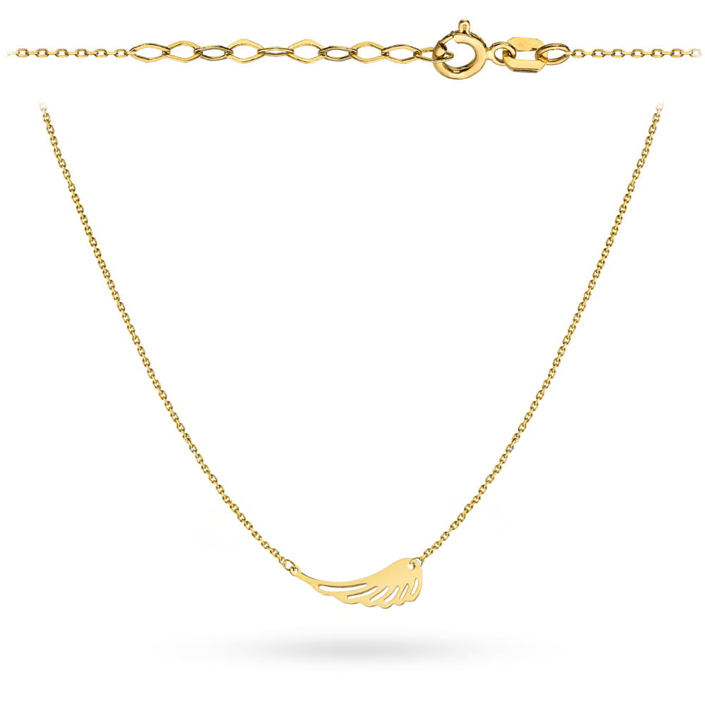 Precyzyjnie wykonana złota celebrytka naszyjnik próby 585. Łańcuszek ankier ze skrzydłem Anioła zawieszonym w poprzek. Zajmujemy się sprzedażą biżuterii ze złota.