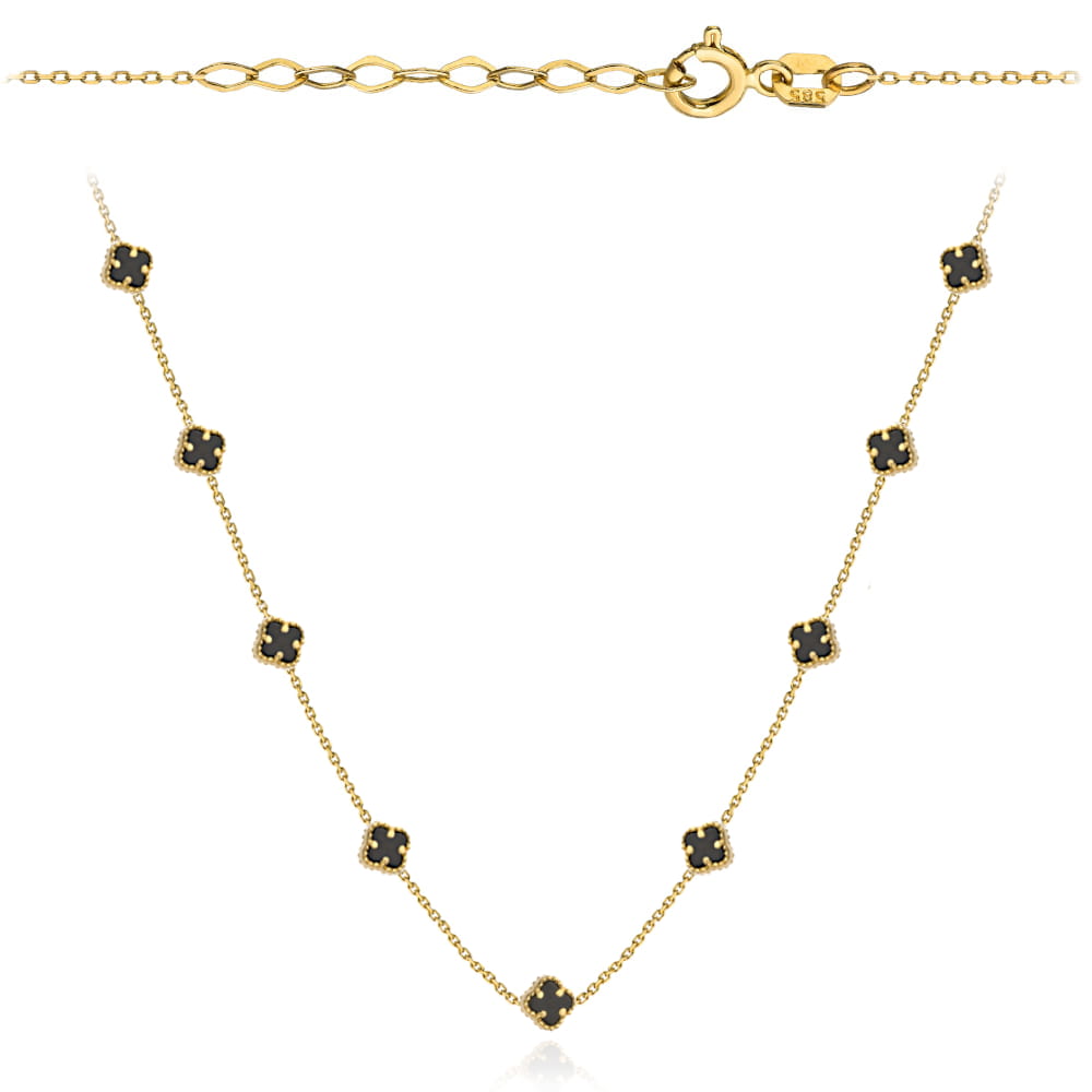 Naszyjnik złoty z czarnymi koniczynkami