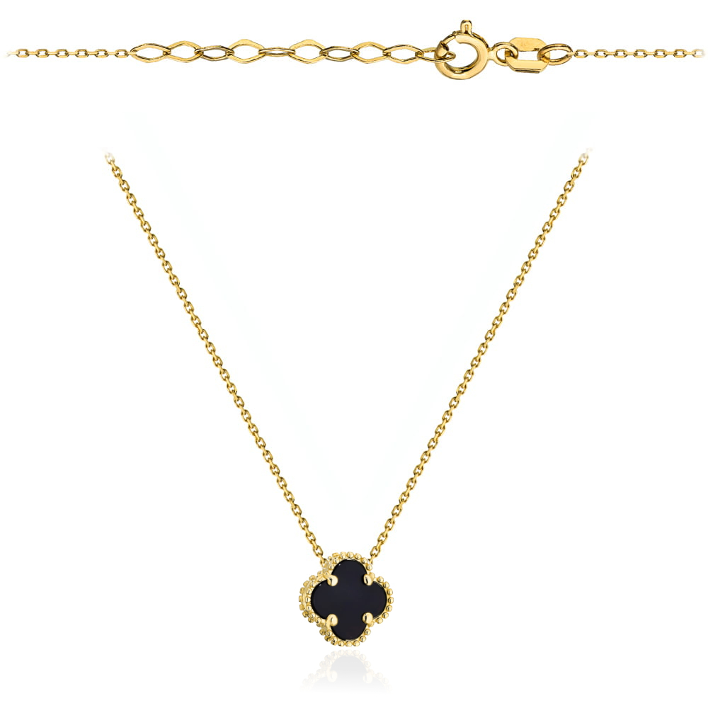 Naszyjnik złoty z dużą czarną koniczynką