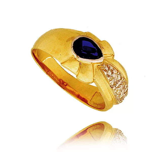 Wyjątkowy pierścionek wykonany z wysokogatunkowego złota. Kamienie szlachetne lub syntetyczne zostały starannie oprawione, co gwarantuje trwałość i estetykę na długie lata.