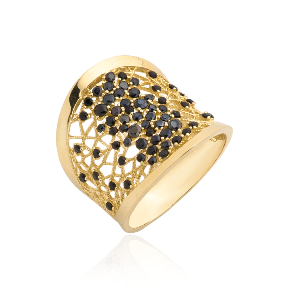 Pierścionek złoty ażurowy z czarnymi kamieniami