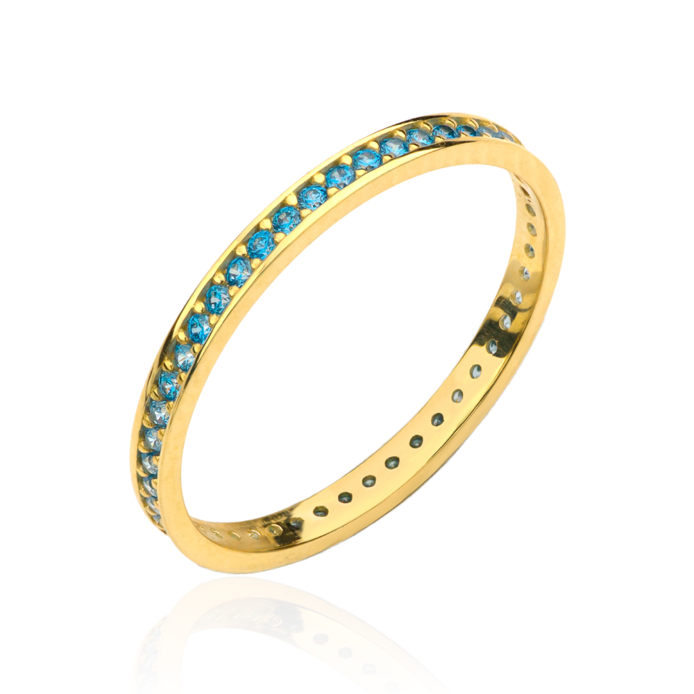 Pierścionek złoty jednorzędówka wysadzana błękitnymi kamieniami
