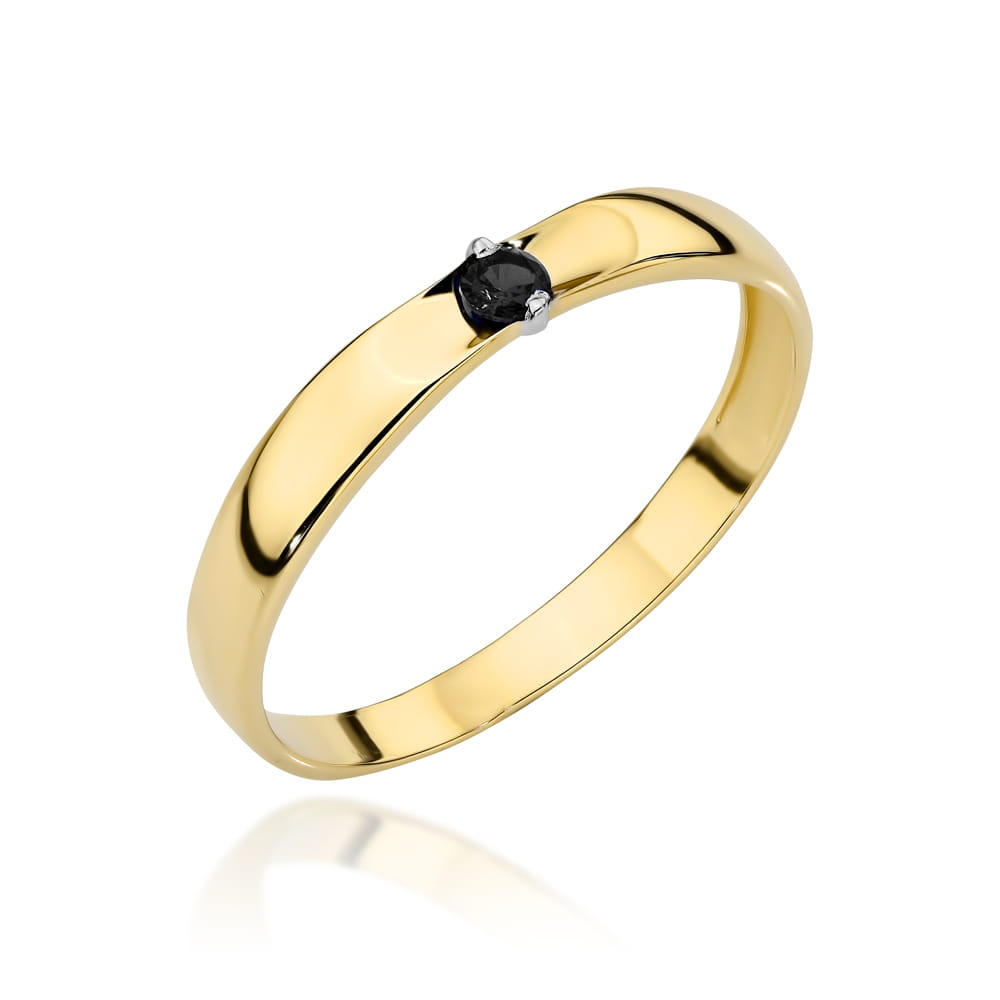 Precyzyjnie wykonany złoty pierścionek próby 585. Ponadczasowy, klasyczny pierścionek z kamieniem w kolorze czarnym.