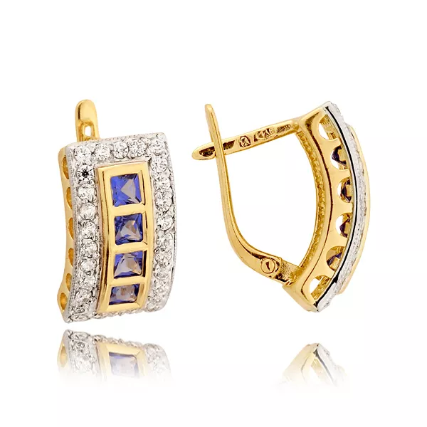 Kolczyki złote zaprojektowane w eleganckim, ponadczasowym stylu. Starannie dobrane kamienie pięknie odbijają światło, podkreślając szlachetność kruszcu. Doskonały wybór dla kobiet ceniących klasykę i jakość.