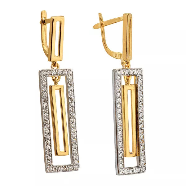 Stylowe kolczyki łączące tradycyjne jubilerstwo z nowoczesnym wzornictwem. Zastosowanie kamieni barwnych lub bezbarwnych nadaje im indywidualnego charakteru i wyjątkowego połysku.