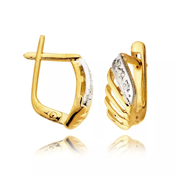 Stylowe kolczyki łączące tradycyjne jubilerstwo z nowoczesnym wzornictwem. Zastosowanie kamieni barwnych lub bezbarwnych nadaje im indywidualnego charakteru i wyjątkowego połysku.