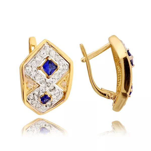 Wyjątkowe kolczyki ze złota o uniwersalnym charakterze. Kamienie szlachetne lub syntetyczne nadają im elegancji i subtelnego blasku. Biżuteria doskonale sprawdzi się jako prezent na każdą okazję.