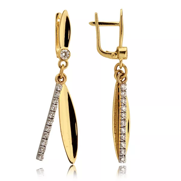 Wyjątkowe kolczyki ze złota o uniwersalnym charakterze. Kamienie szlachetne lub syntetyczne nadają im elegancji i subtelnego blasku. Biżuteria doskonale sprawdzi się jako prezent na każdą okazję.