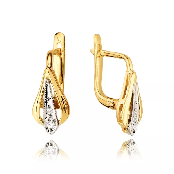 Wyjątkowe kolczyki ze złota o uniwersalnym charakterze. Kamienie szlachetne lub syntetyczne nadają im elegancji i subtelnego blasku. Biżuteria doskonale sprawdzi się jako prezent na każdą okazję.