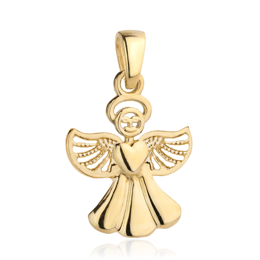 Zawieszka złota aniołek z gładkim serduszkiem